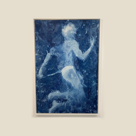 This alchemical painting by Sidney Carron (1 × 1.50 m) captures the moment when the body dissolves into light. Between abrasion, constellations of matter, and nocturnal depth, the image oscillates between appearance and disappearance, like a suspended memory.