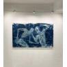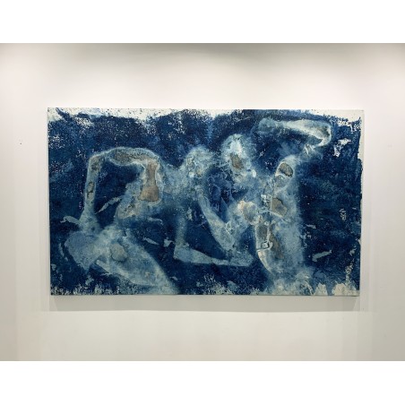 In this large composition (160 × 97 cm), Sidney Carron shifts Senegalese wrestling towards the realm of myth. Everything is at play in this alchemy of erasure layers, frictions, imprints, areas eroded as if by slow oxidation. The wrestlers become radiographic silhouettes, at the boundary between ritual and memory, suspended in a moment where violence transforms into dance. Sidney does not describe a fight; he transmutes an ancestral gesture into a floating, almost sacred image, where one can sense the breath, the heat, and the silence.